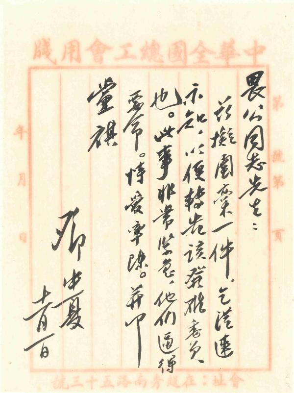 【解釋】:“中華全國總工會緘”