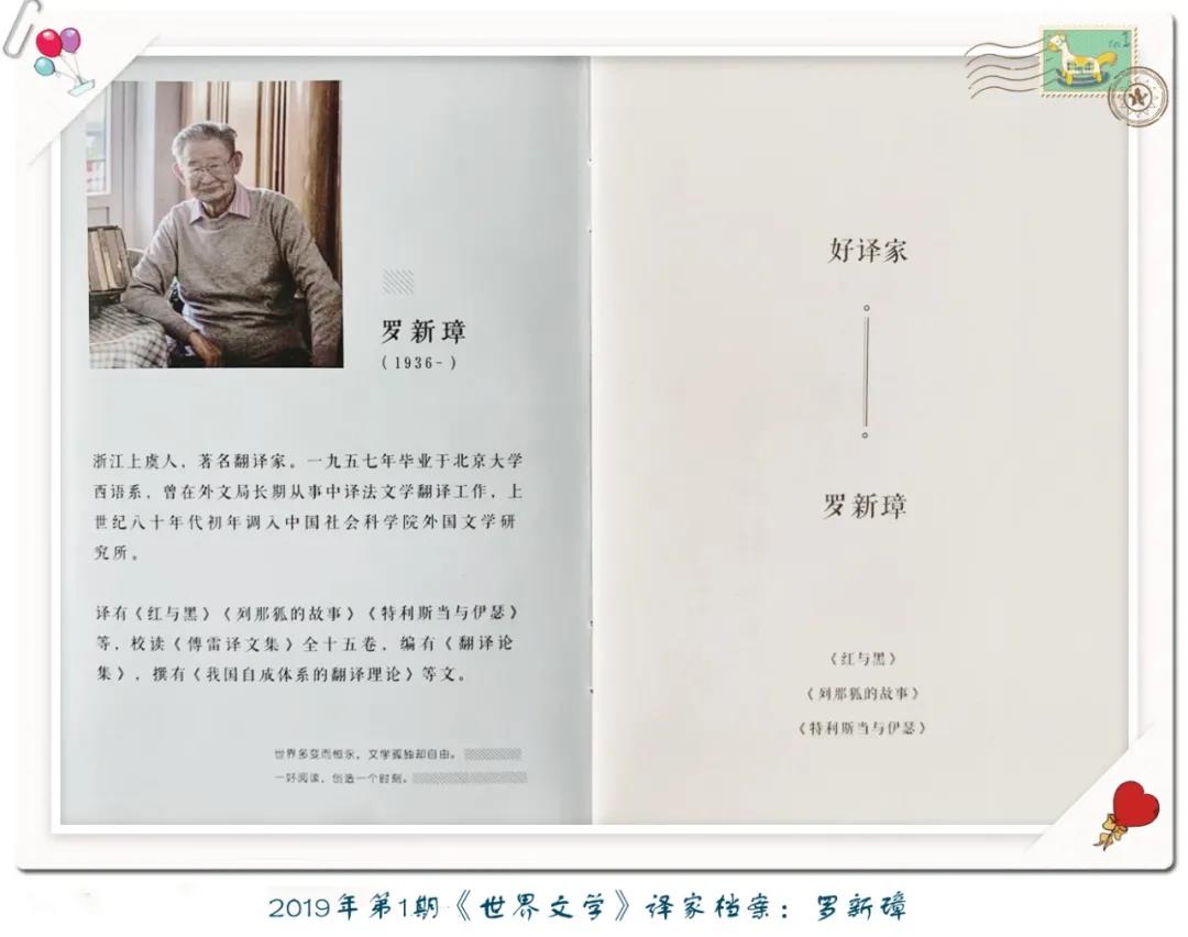 在譯界,羅新璋先生有“傅雷傳人”的美名。其實,除了幾次書信往來,羅先生并未有機會當面聆聽傅雷的教誨,他向傅先生學藝的方式很特別:將傅譯和原文對讀,逐句抄寫譯文,一共抄了二百多萬字,幾乎將傅譯窮盡?!俺瓡迫f卷,下筆如有神”:羅先生就是用這種最扎實的學習方法將傅譯的“真神”化入了自己的筆端。1959年,二十三歲的青年羅新璋“學成”之后的首次亮相——他翻譯的法國作家拉斐德《長江四日行》的譯文——登上了《世界文學》的舞臺。這次發表開啟了羅先生與《世界文學》幾十年的合作,也是他譯者生涯的發端:之后,《特斯當與伊瑟》《列那狐的故事》《紅與黑》《栗樹下的晚餐》……羅先生用他古雅的譯筆為我們奉上了一部又一部法國文學漢譯經典。