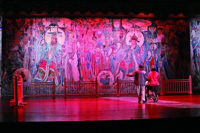 《永樂宮紀事》創造性地將蒲劇、歌劇、舞劇、話劇、音樂劇等多種藝術形式有機結合、融為一體,在充分利用地域文化元素的同時,還將珍貴的永樂宮壁畫與現代聲光電等舞臺技術有機結合,營造出絢麗多彩的舞臺效果。