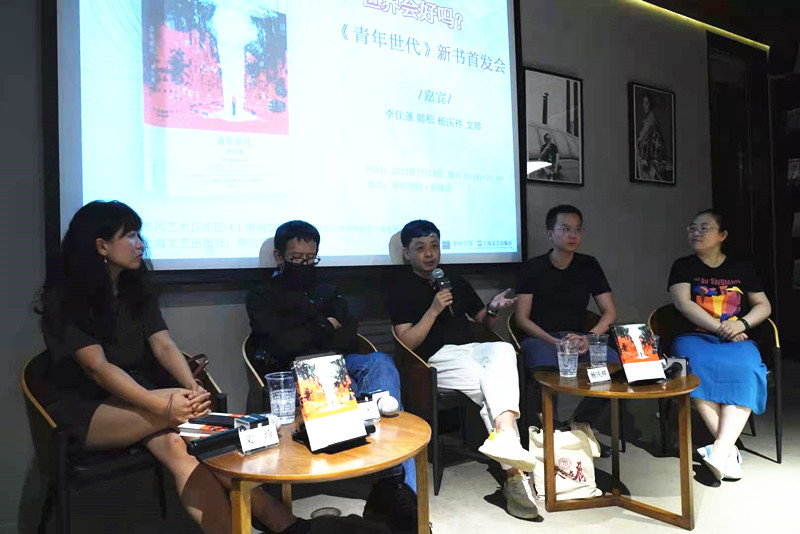 7月24日,李佳蓬攜處女作《青年世代》出現在單向空間北京東風店,與科幻作家韓松、評論家楊慶祥、作家文珍一同探討人工智能、科幻創作等問題。