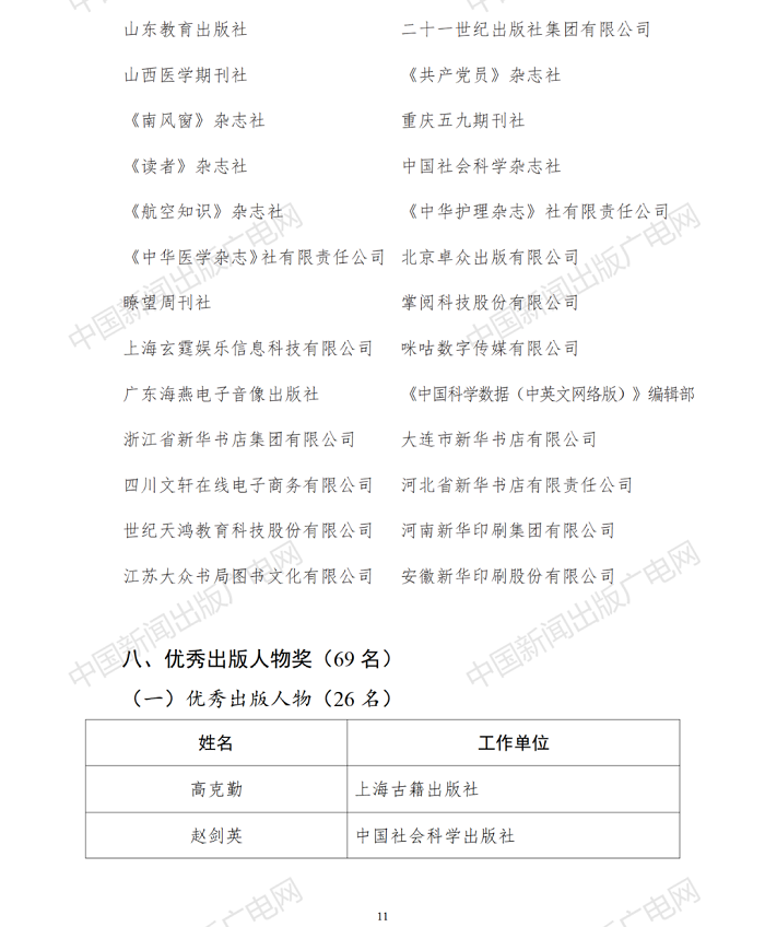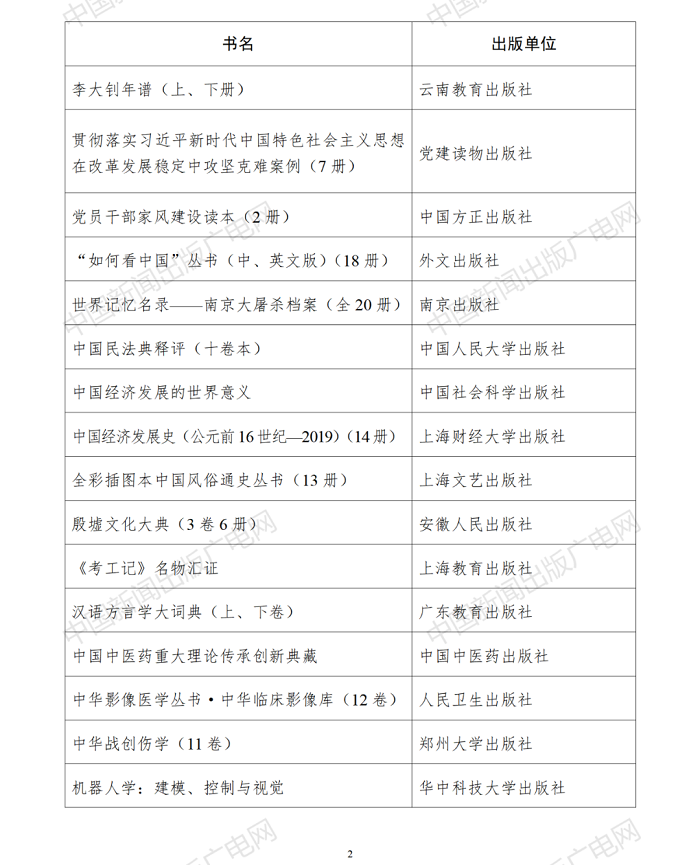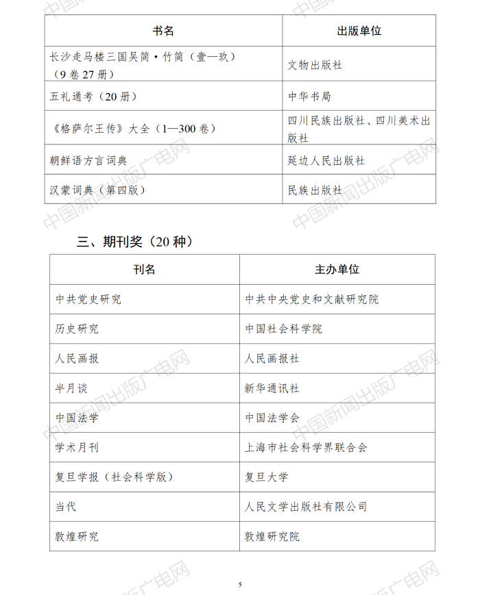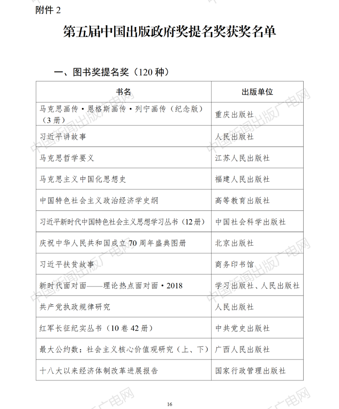 2. 第五屆中國出版政府獎提名獎獲獎名單