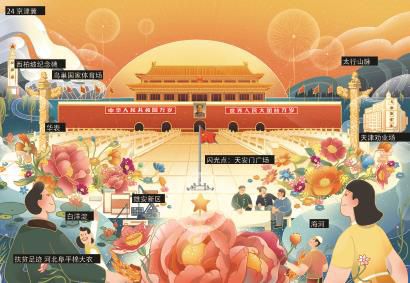 鋪開“一個都不能少——長卷尋寶”插畫長卷,一股藝術創新之風撲面而來。長卷的形制取法于《清明上河圖》等古代畫卷漸次呈現的方式,插畫的筆觸則采用當下國際時政漫插畫界流行的技法,結合傳統水墨畫散點透視與現代美術3D立體視角,創新呈現出“傳統+現代”的復合藝術表達形式?!肮适绿N藏在鮮艷的色彩形象中,知識包含在線條與色塊的組合之內?!敝袊鴤髅酱髮W教授李智認為,長卷承載著中國美學和中國氣質,讓成長在中國傳統文化復興進程中的Z世代有了與生俱來的親切感?!敖h百年、脫貧攻堅等中國正在經歷的歷史事件,通過插畫長卷的形態得到展示,借助動態圖形的視覺傳播優勢,使宏大主題如春風化雨般浸潤了年輕受眾的心?!?/p>