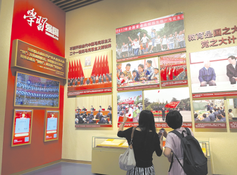 自7月15日向公眾開放預約后,中國共產黨歷史展覽館每日人流如織。在“‘不忘初心、牢記使命’中國共產黨歷史展覽”展出的2600余幅圖片、3500多件套文物實物中,記者看到了不少動人的讀書故事,更遇到了不少像蔣璐夫婦這樣的愛書人。