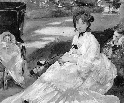 其次是所謂“戶外畫法”。其實最早采用這種畫法的人不是印象派畫家,而是巴比松畫派的畫家,后者以描繪楓丹白露等法國風景和鄉村景色而聞名。不過他們在繪畫時只是在戶外得其大概,之后帶回畫室對作品做進一步完善。而印象派畫家才是真正意義上在戶外完成畫作的第一批畫家。1868年前后,莫奈和雷諾阿肩并肩地在一個名叫“蛙塘”的風景名勝地創作了第一批帶有較為嚴格意義上的印象派風格的戶外作品。1870年,馬奈在戶外完成了《在花園里》,差不多同一時期,莫奈也創作了類似題材的作品??傊?874年,莫奈、雷諾阿、畢沙羅、德加、莫里索等人舉辦第一屆印象派畫展時,印象派從孕育到嶄露頭角,早已過去五六年甚至更長時間了。