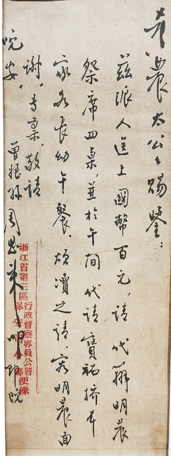 這封尺牘,入古而出新,清新雅致,厚實曉暢,周到的文字體現了周恩來對故土親人深沉的愛,也展示了這位偉大的馬克思主義者的高風亮節。周恩來一生點滴中見原則,細微中見精神。他經常告誡領導干部要過好思想關、政治關、社會關、親屬關、生活關,保持共產黨人的政治操守和優良作風。新中國成立后,身為大國總理的周恩來與在京親屬專門談到紹興祖墳“平墳”小事。他要求不準修墳,要平墳,整理出土地交公使用。為做好大家思想工作,他說:“平墳的問題,也不能由我一個人決定,以后如有機會到紹興,我要找本家開個會,把墳平了?!焙髞?,遵照他的意見,紹興的周家將幾處祖墳都平了,棺木全部就地深埋。