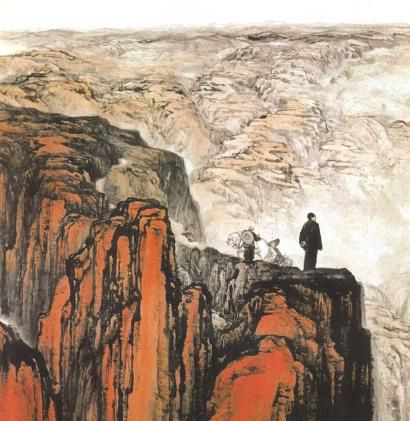 群山蒼茫逶迤,險峰雄峙高聳,江流回繞相擁,就在這萬水千山之間,一支雄壯的隊伍,正高舉著鮮紅的戰旗,行進在曲折崎嶇的山道上,向著光明的前景豪邁地挺進。這幅氣勢磅礴、氣象壯麗、氣魄豪放的山水巨作,是著名中國畫家李可染創作的史詩名作《長征》。