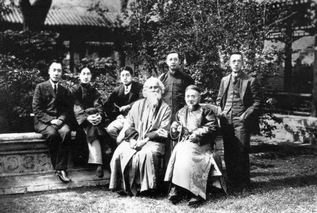 1924年,泰戈爾訪問北京時與辜鴻銘(前排右一)等合影