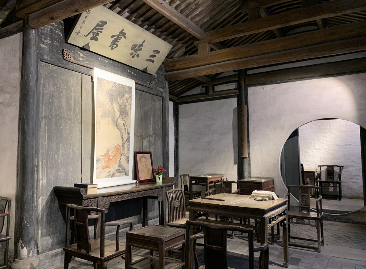 三味書屋約有35平方米,正中上方懸掛著“三味書屋”匾額,是清朝著名書法家梁同書所題?!叭丁钡囊馑紴椋鹤x經味如稻粱,讀史味如肴饌,諸子百家味如醯醢。魯迅在三味書屋的老師壽懷鑒(字鏡吾)是紹興城中極方正、質樸、博學的人。在三味書屋的近五年間,魯迅依次學習了《幼學瓊林》《四書》《五經》等。