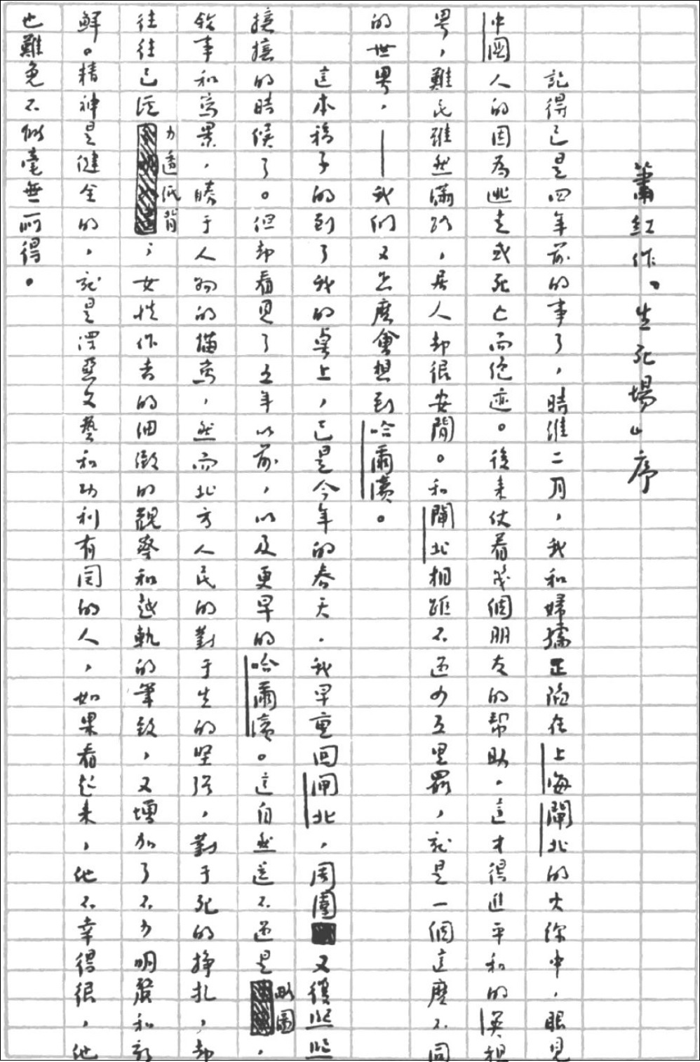 魯迅對后輩作家多關切照顧,并提供無私的幫助。在現存魯迅書信中,與蕭軍、蕭紅的通信即有20封之多,魯迅還慷慨為二人作品作序。讀罷《生死場》后,魯迅大為激動,在他看來,蕭紅的小說給人以堅強和掙扎的力氣,“現在是一九三五年十一月十四的夜裡,我在燈下再看完了《生死場》。周圍像死一般寂靜,聽慣的鄰人的談話聲沒有了,食物的叫賣聲也沒有了,不過偶有遠遠的幾聲犬吠。想起來,英法租界當不是這情形,哈爾濱也不是這情形;我和那裡的居人,彼此都懷著不同的心情,住在不同的世界。然而我的心現在卻好像古井中水,不生微波,麻木的寫了以上那些字?!痹跍陂g,蕭紅經常拜訪魯迅、許廣平夫婦,是他們難得的忘年交。魯迅逝世后,蕭紅的長篇散文《回憶魯迅先生》真摯動人,業已成為綿長豐贍的魯迅紀念史中一部無法回避的經典作品。