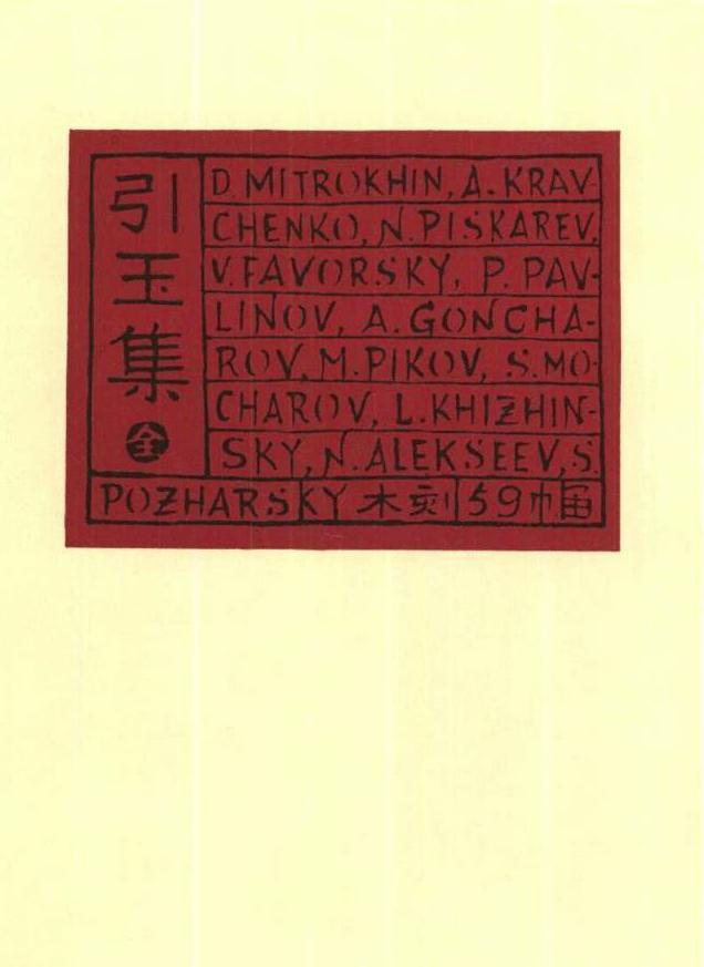 魯迅與曹靖華的深厚情誼,從《引玉集》的出版可窺一孔?!耙痪湃荒觏?,正想校印《鐵流》,偶然在《版畫》(Graphika)這一種雜志上,看見載著畢斯凱來夫刻有這書中故事的圖畫,便寫信托靖華兄去搜尋。費了許多周折,會著畢斯凱來夫,終于將木刻寄來了,因為怕途中會有失落,還分寄了同樣的兩份。靖華兄的來信說,這木刻版畫的定價頗不小,然而無須付。蘇聯的木刻家多說印畫莫妙于中國紙,只要寄些給他就好?!眱赡觊g,魯迅寄贈中國各種宣紙及日本紙品與舊書六次,曹靖華先后七次從蘇聯木刻家手中搜尋木刻作品118幅,寄與魯迅。1934 年,介紹蘇聯木刻版畫的《引玉集》由三閑書屋出版,魯迅為該書設計封面。封面底色淡黃,上部居中位置印有紅色木刻一副,書籍名稱和木刻作者英文名均在其中,封面內容與版畫技法融合巧妙。