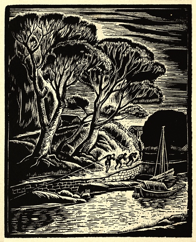 魯迅對木刻版畫的鐘情,或許是所有藝術門類里最深的,一生為木刻書寫文章多篇,多次幫助青年木刻藝術家,逝世前不久還參加全國木刻流動展覽會。羅清楨是魯迅喜歡的青年木刻家之一,1933年后的日記中有二十多次提及他們的交往。上圖為羅清楨1934年所作《韓江舟子》。羅將這幅寄給魯迅后,魯迅在回信中表示肯定并提出建議“《韓江舟子》的風景,極妙,惜拉纖者與船,不能同時表出,須閱者想像,倘將人物布置得遠些,而亦同時看見所拉之船,那就一目了然了?!?/p>