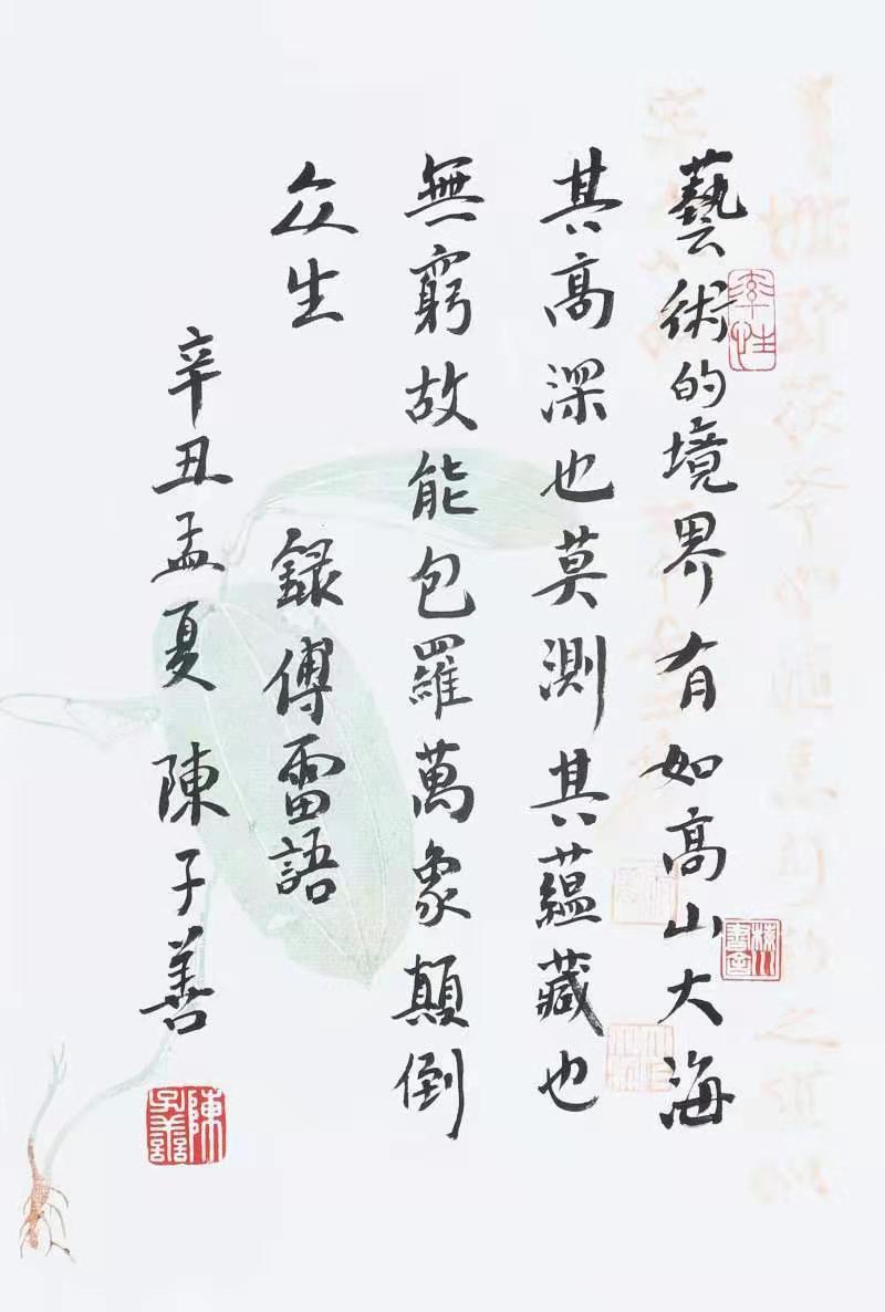 他帶給我們的最新驚喜,是這個世界上竟然會有一個“陳子善教授手錄新文學經典墨跡展”。但這次的驚喜又和以往有所不同,它以“出圈的節奏”挑戰了我對陳老師才能的想象力。陳老師怕我驚喜得找不著方向,就在微信里介紹說:“我這墨跡展,字不怎么樣,但自以為獨創一格的,是我只寫新文學名家的名言雋語,計有魯迅、胡適、周作人、郁達夫、徐志摩、梁實秋、林語堂、巴金、豐子愷、傅雷、張愛玲、木心等十二家的詩、對聯和警句。這是從未有過的,而且這些人也都是我研究過的……”我不禁揣想:陳老師對現代文學中這些人物星辰的感情究竟有多深不可測呢?他為這些人和書和文章以及與之有關的人和書和文章,獻了白天獻夜晚,獻了朝陽獻夕陽,獻了簡體獻繁體,獻了工作獻退休?,F在,又把墨跡獻出來了。