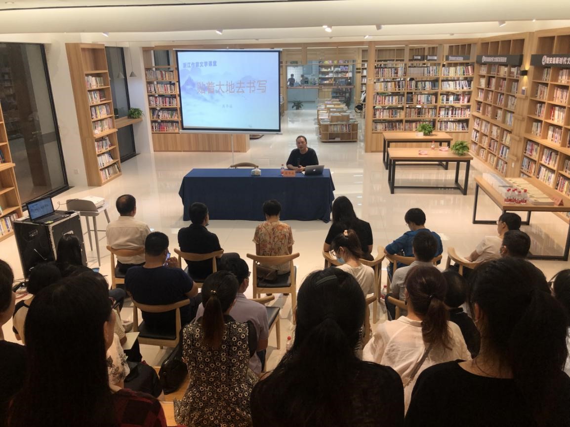 為提升基層作家文學創作水平,積極開展“浙江作家文學課堂”,浙江省作協散文委員會委員周華誠以“貼著大地去書寫”為題為磐安三十余名散文作家和文學愛好者上了一堂接地氣、貼生活的文學輔導講座,近距離交流互動,耐心答疑解惑,鼓勵基層作家結合實際生活提升創作力。