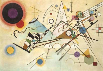 經過對色彩的集體開悟,抽象派畫家們進一步向線條和幾何形狀開掘。數學中常見的直線、曲線、方形、圓形、三角形此時成了主角。三角形不太受寵,它在古典繪畫的風頭(隱形的)已過,最受青睞的是圓形和方形,各有陣營。