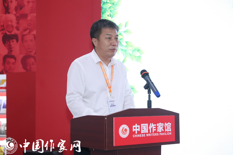 吳義勤代表中國作協致辭。他在致辭中表示,今年是中國共產黨成立100周年。這一百年,是中國共產黨團結帶領中國人民,以“為有犧牲多壯志,敢教日月換新天”的大無畏氣概,書寫中華民族幾千年歷史上最恢宏的史詩的一百年;這一百年,同時也是中國新文學與黨成長壯大的歷程始終相生相伴、相互呼應,始終與黨同步、與革命同步、與時代同步、與歷史同步的一百年,更是中國文學生動記錄、描繪黨率領人民不懈奮斗宏偉歷史畫卷的一百年。今年的中國作家館聚焦百年中國文學的紅色基因,就是為了全面總結新文學與黨一同成長、一同進步、一同發展的非凡歷程,形象展示新文學事業與黨的事業息息相關、共同書寫百年中國光輝篇章的歷史足跡。