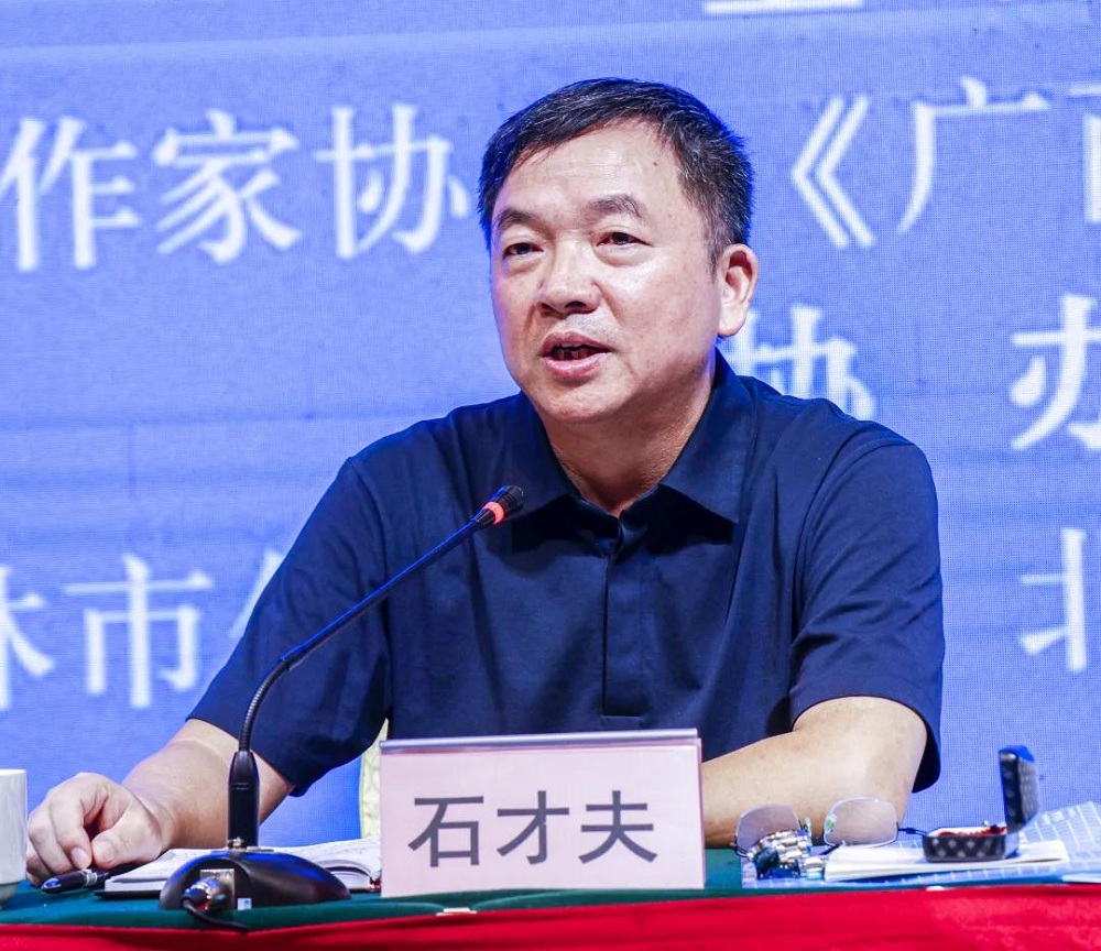 石才夫強調,全區作家及奮斗在各條戰線的文藝工作者要以高度的政治責任感和使命感,堅持“二為”方向和“雙百”方針,堅持以人民為中心的創作導向,為實現中華民族偉大復興、建設新時代中國特色社會主義壯美廣西貢獻文學力量。