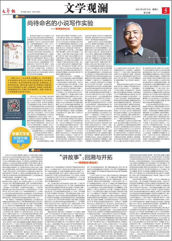 (本文發于中國作家網與《文藝報》合辦“文學觀瀾”??懊┒芪膶W獎獲獎作家研究”2021年9月15日第5版)