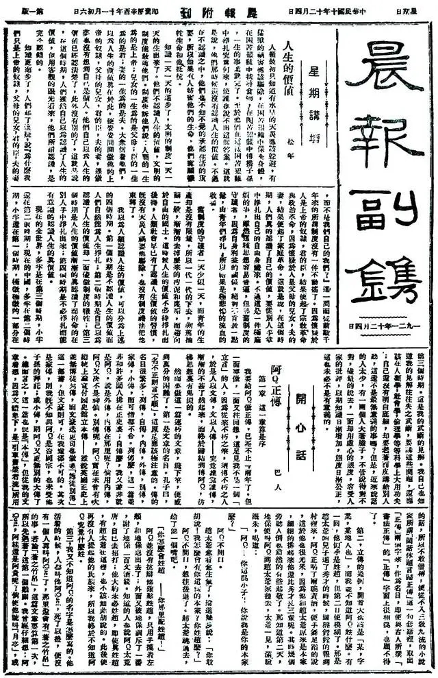 《阿Q正傳》最早刊登于《晨報副刊》(當時題為《晨報副鐫》,1925年改為《晨報副刊》)