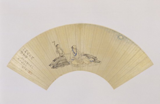 扇頁有自題:“一杯在手,世事等閑。乙酉清和月畫,似石生先生正。秣陵樊圻?!扁j“樊圻之印”白文印、“洽公”朱文印?!耙矣稀笔乔迩∪辏?765年),樊圻時年50歲。