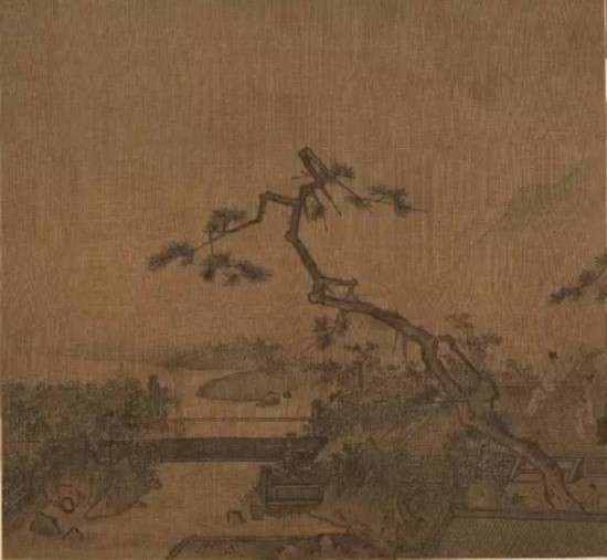 元代畫家張可觀,承襲南宋馬遠一派畫風,作品以簡馭繁,既有華美氣質又顯得精煉蒼勁。張可觀抓住近景特寫,又讓遠景被彌散的煙霧遮擋,與天空混為一體,體現出幽深廣遠的味道。畫面上一位文人在平臺上臨水賞月,在意境上增添了含蓄之美。