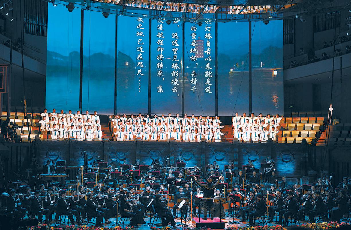 藍色的燈光映照周圍,猶如運河上的粼粼水波。一艘航船從歷史的煙云中駛來,沿岸風景如畫:燃燈塔影影綽綽,張家灣煙柳依稀,積水潭帆檣林立……21日晚,中秋佳節之際,大型京劇交響套曲《京城大運河》在國家大劇院音樂廳再度上演,亮相第九屆中國京劇藝術節。北京交響樂團藝術總監李飚執棒北京交響樂團、北京京劇院、北京音協合唱團,攜手譚孝曾、杜鎮杰、李宏圖、遲小秋、朱強等京劇名家共同登臺。