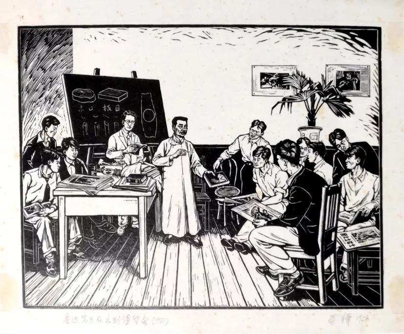 圖4 魯迅先生在木刻講習會 李樺 1956年 木刻