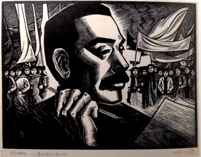 圖6 戰斗的旗幟——魯迅與青年運動 王琦 1973年 木刻