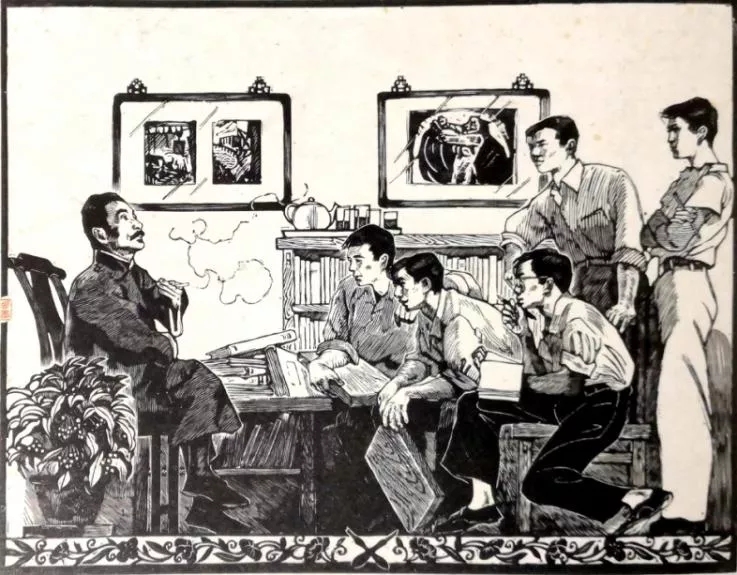 圖17 魯迅和木刻青年 黃永玉 1956年 木刻