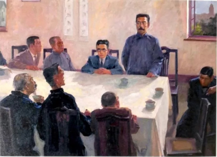 圖20 魯迅在廣州中山大學校務會議上 韋啟美 約1973年 油畫