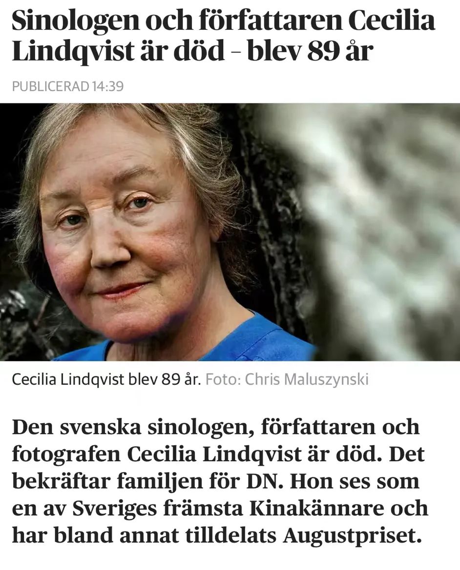 澎湃新聞從活字文化方面獲悉,瑞典漢學家林西莉(Cecilia Lindqvist)于當地時間上周日(9月26日)去世,享年89歲。1950年代末,林西莉跟隨瑞典漢學家高本漢(Klas Bernhard Johannes Karlgren)學習漢語。1961年至1962年,林西莉來到北大讀書求學,此后曾數十次到中國訪問。