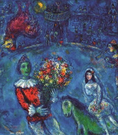 這是一位頗有大眾緣的藝術大師,他的畫似用甜蜜調和了色彩,以天馬行空的想象力呈現夢幻與純真的世界。這卻也是一個仿若流浪在藝術世界的孤兒,游離于印象派、立體派、抽象表現主義等任何一個藝術流派,始終難以被歸類或定義。理解這樣的畫,重要的索引其實是夏加爾經歷的苦難的人間真實。