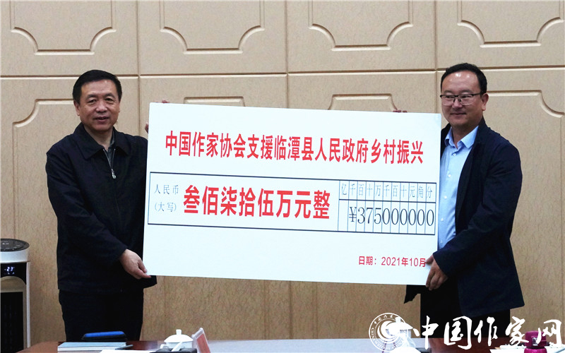 張宏森代表中國作協向臨潭縣捐贈幫扶資金