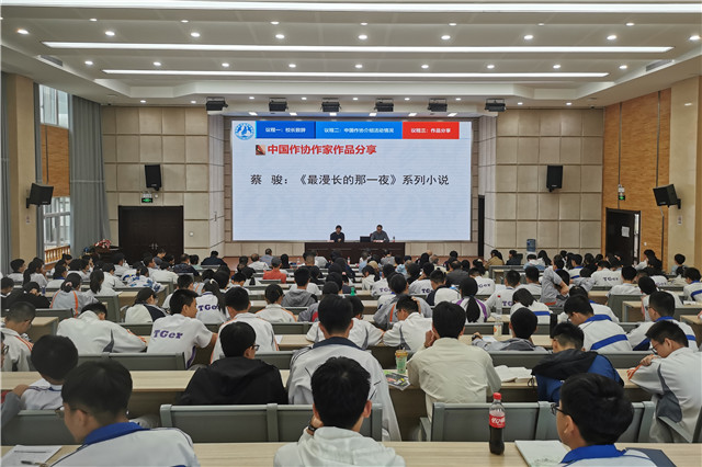 在桐鄉市高級中學,中國作協“到人民中去”文學作品分享會讓作家們與桐高師生及桐鄉本土作家展開了一場熱烈的文學交流與討論。會上分享了凡一平的《我們的師傅》、海飛的《驚蟄》《麻雀》、蔡駿的《最漫長的那一夜》系列中的《北京一夜》、魯若迪基的《小涼山很小》等作品,大家先后就自己閱讀四位作家作品的體會以及平時閱讀和寫作中遇到的困惑展開了討論,會上還分享了桐鄉當地作家和桐高師生的多部作品,參加文學社會服務實踐的作家們對這些作品逐一進行了點評,大家就創作心得進行了深入探討與交流。
