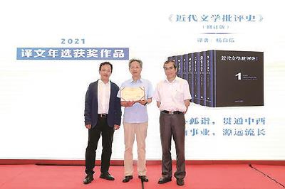 而楊自伍翻譯韋勒克這部批評史巨著的過程,即是一次非常難得的經驗。最初是他父親,同為英美文學翻譯家的楊豈深將作品一、二卷介紹給譯文社,而且他譯了兩章,請譯文社編輯過目。不久譯事中斷、以致譯稿遺失,楊自伍到現在都遺憾沒能看過這兩章一個字。他在發表獲獎感言回憶說:“到八十年代,張建平先生到我們家來重提舊事,那個時候我父親已經年近古稀,我不知天高地厚,就說我來試試。我父親經過考慮,征得譯文社同意,就達成了這樣一個默契。有幸的是他修改了第一卷。第二個榮幸是方平先生是第一位責任編輯,他肯定了這本譯作的基本質量,后來就順理成章延續了這么多年?!被诖?,楊自伍謙稱,他個人獲獎是其次,這個獎最重要的是獎掖一種傳承精神。