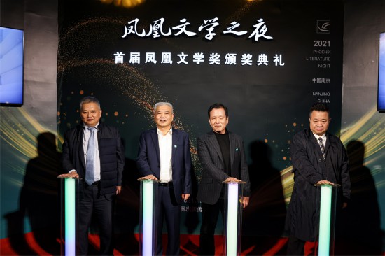 頒獎典禮最后,中國作協副主席李敬澤、中國作家協會書記處書記邱華棟、鳳凰集團董事長梁勇、鳳凰出版傳媒股份有限公司總經理佘江濤聯手啟動第二屆鳳凰文學獎。