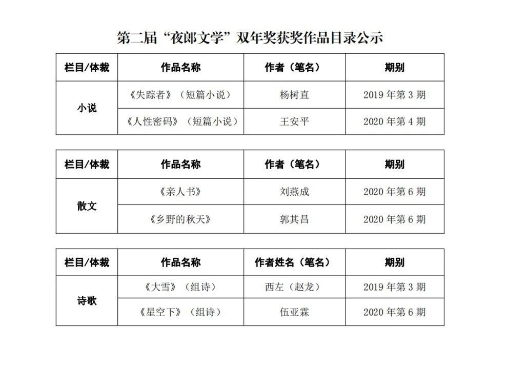 文藝創作扶持項目驗收座談會后,第二屆“夜郎文學獎”頒獎典禮為6位獲獎者宣讀獲獎詞并頒發證書。獲獎名單如下。