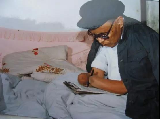 朱彥夫用殘肢握筆,堅持學習和寫作。