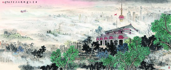 本次展覽展出了北京城市山水畫研究會名家邀請作品和楊留義師生作品近100幅。畫家們在繼承傳統山水畫的基礎上,對北京、上海、西安、杭州、澳門、青島、廣州、拉薩等地進行了創造性描繪,滿懷激情地表現了人與城市、人與自然、城市與自然之間的新關系和新平衡,用獨特的筆墨語言關注城市的個性、詩意的棲居、歷史的輝煌與時代的創造,生動地展現了新時代中國的大美之境。這些作品都有山有水有城,在保持山水畫品質的同時再巧妙布局城市物象,并充分顧及了每座城市的歷史、地理、環境和地標性建筑。楊留義表示,城市山水畫是中國畫與新時代的融合,是以城市為主題的創新發展和新概念下的新課題。城市山水畫歌頌祖國大好河山,表現自然景觀和人文景觀高度融合后的雄渾博大。