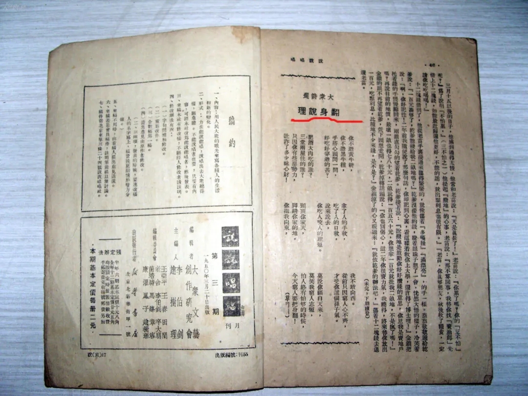 《說說唱唱》,李伯釗、趙樹理任主編,1950年1月在北京創刊,1955年3月???,共出刊63期。