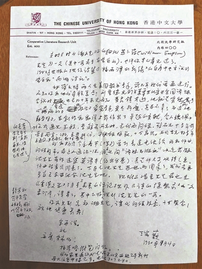 31年前翻譯家趙瑞蕻致語言學家周定一的一封信 “我愛遠山的野火 燒赤暮色里一湖波” 再憶西南聯大的南湖詩社
