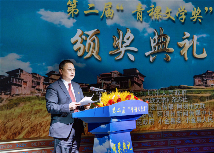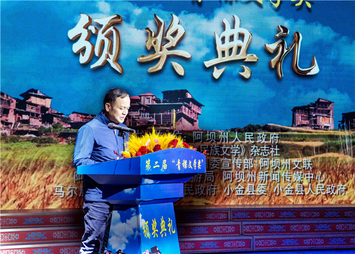 12月24晚,第二屆“青稞文學獎”頒獎典禮舉行。施戰軍代表中國作協到會祝賀,石一寧、馬爾康市委書記李清勇分別致辭,陳亞軍宣讀授獎詞,楊星主持頒獎。