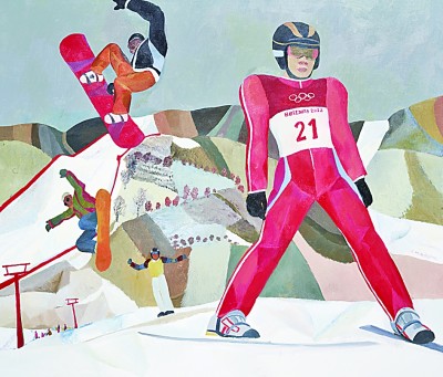 飄雪的北京盡顯“雙奧之城”的魅力,國家跳臺滑雪中心“雪如意”點亮群山之巔,雪山上順勢而下的運動員們身姿如飛鷹,雪霽中人們互助協作。藝術家們盡情描繪著冰與雪,也描繪著與冰雪共舞的人們。