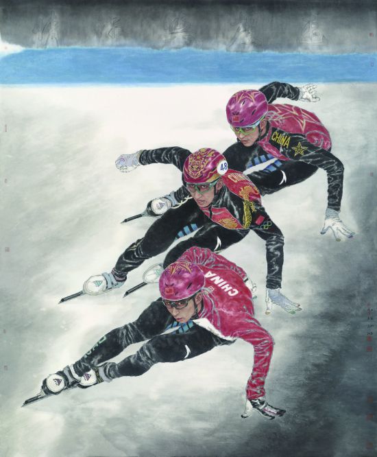 中國國家畫院院長盧禹舜在致辭中說:“我們力圖以藝術的生動形象講述奧林匹克的故事,精彩呈現中國和世界各國冰雪健兒自強不息、超越自我的拼搏歷程,深入闡釋綠色、共享、開放、廉潔的辦奧理念,展示北京冬奧會、冬殘奧會精彩、非凡、卓越的奧林匹克新篇章,進而推動中華文化和奧林匹克文化的進一步融合交流,推動我國同世界各國文明的互鑒與民心相通,與全世界共享奧林匹克文化之美,共享中華文化之美,以更美、更團結、更人文、更和諧的‘天地人和’愿景,共創美好的希望與明天?!眹H奧委會副主席于再清在致辭中代表國際奧委會對此次畫展的舉辦表示熱烈祝賀。他說,北京成為全球第一座舉辦夏季奧運會和冬季奧運會的“雙奧之城”,是北京乃至整個中國的榮譽。中國國家畫院藝術家也與奧運精神有著直接的淵源,并通過自身的藝術創作起到了重要的文化紐帶作用。