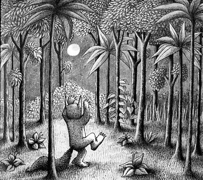 被大江稱為“童話連環畫天才”的森達克是一個怪才,他的作品總是在關注孩子們的憤怒、不安、焦慮等情緒,并以奇特的幻想幫助孩子們治愈內心的創傷。以他最負盛名的“森達克三部曲”為例,第一部《野獸國》里出現了很多野獸,而在第二部《午夜廚房》中,森達克描繪了一個裸體的小男孩,至于最后一部《在那遙遠的地方》,則被公認為是森達克所有作品中最難解讀、像謎一樣難以捉摸的作品。