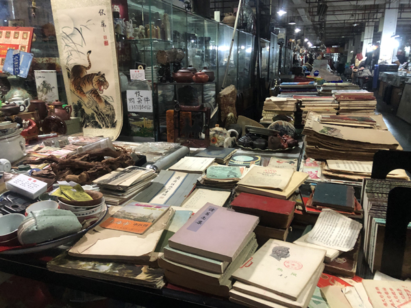 某日,因為喜歡上養金魚蘭壽,搜索到普陀區靈石路有家全市最大的觀賞魚花鳥市場。靈石路,1958年才建成,以山西靈石命名,跨了靜安、普陀、寶山三個區,而花鳥市場地處普陀居民區,周圍生活氣息相當濃厚。走進綠植蔥蔥的市場,看見實惠的金魚之王蘭壽頓時心生喜悅,因為蘭壽好看但難養,價格又都偏貴,所以能買到合適練手的實屬不易。在市場里逛到深處,意外發現后排還有棟三層樓的商場,原來是賣古玩為主的“聚奇城”。城隍廟、云洲商廈以及以前的東臺路等都號稱上海的“潘家園”,但這趟偶然間撞進來,觀察下來發現這家才是價格公道利民的真“園”,里面一樓賣郵票錢幣為主,二樓有很多古董和舊書的攤位店鋪,三樓的地攤市集每到周五都是人頭攢動。