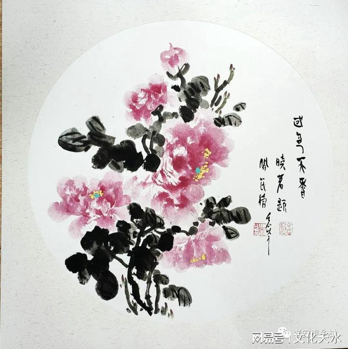張開茂先生為鄉賢溫子安先生贈送精心創作的牡丹