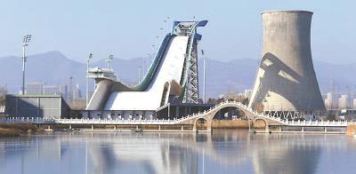清華大學建筑研究院張利教授應邀擔任首鋼滑雪大跳臺主設計,他是北京冬奧申辦的主陳述人之一,也是2022年北京冬奧會場館的設計師之一,延慶和張家口都有他的設計項目。這次在首鋼的設計方案叫作“雪飛天、冰絲帶”,靈感來自敦煌壁畫中的飛天造型。他把群明湖畔的四座雙曲線冷卻塔作為依托,在群明湖的西南角設計了一個60米高、符合國際標準的滑雪大跳臺,比賽時,用燈光在冷卻塔上打出飛天的造型,蔚為壯觀。