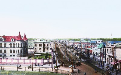 中信出版集團出版的《彩色的老北京:手工上色老照片還原故都風貌》選取了清末民初的160張北京黑白老照片,采用先進的數碼手工上色技術還原城市色彩,希冀復原古都的真實面貌,展現一個彩色的老北京。圖為百余年前從北京崇文門城樓北望的景致。
