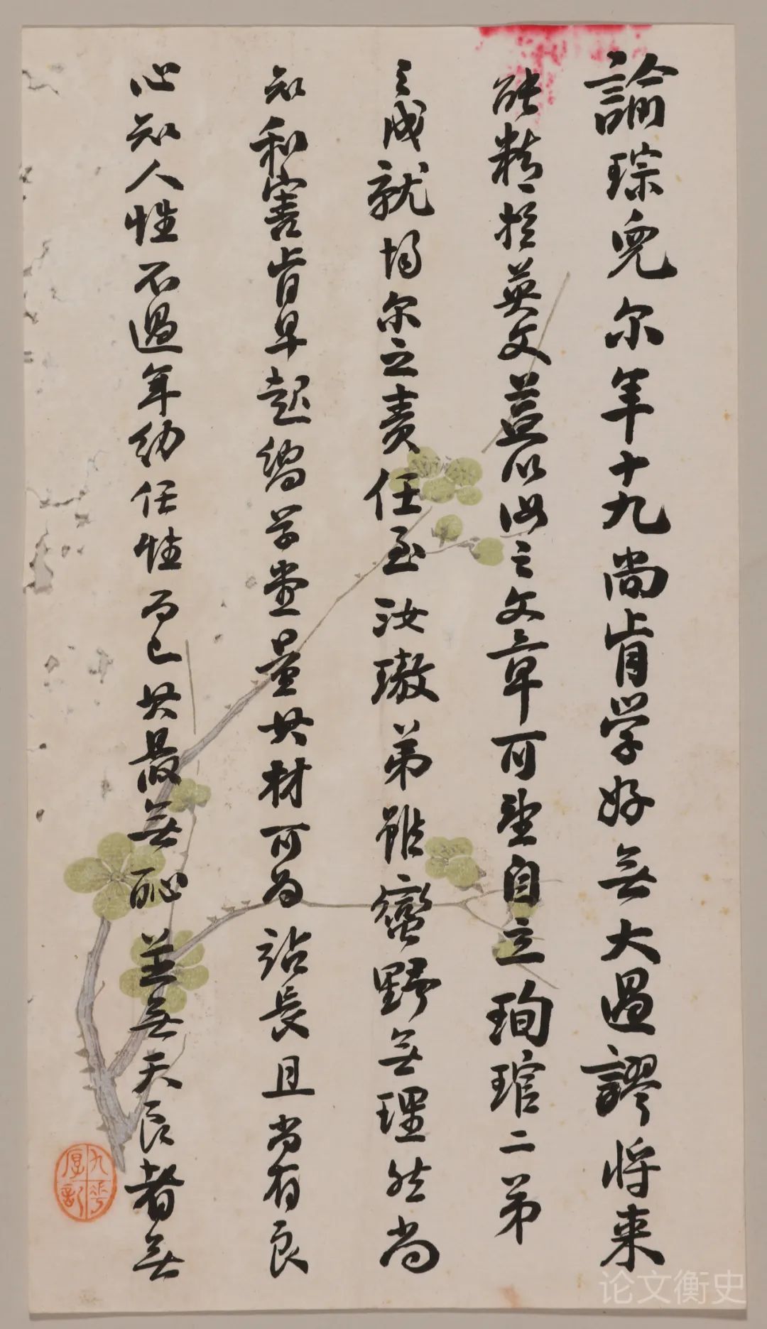 需要先行說明的是,由于這部分書信中只有一封標記了明確日期,即“癸亥三月七日”的短札,其他則或缺年份,或僅存某日,甚至一無所有,因而要確認各信的寫作時日殊非易事。并且,這些家書所言都是家務,基本不涉及時事,也很難建立時間坐標。筆者只得綜合采用外部事實考證、內部情理關聯以至所取信紙的排比等方法,才將這些書信大致理清眉目。