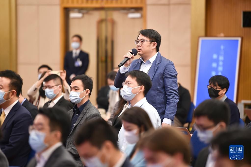 記者在分會場提問。 新華社記者 陳鐘昊 攝